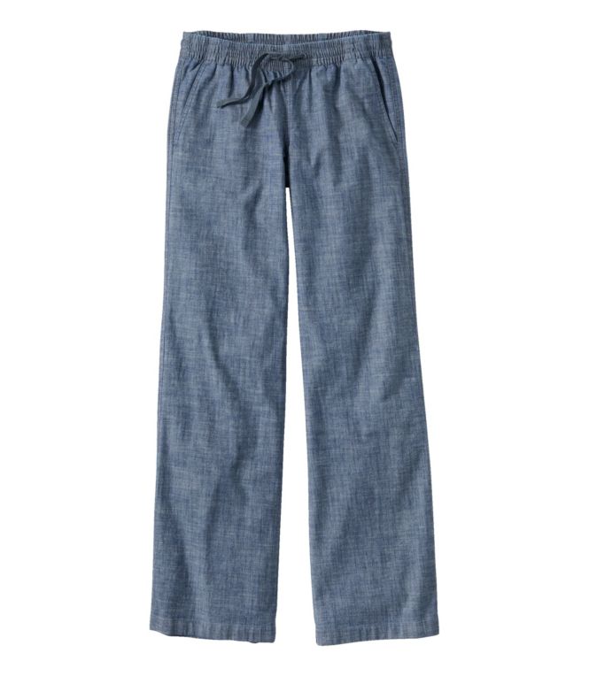 Women's Lakewashed Pull-On Chinos, Mid-Rise Wide-Leg Chambray